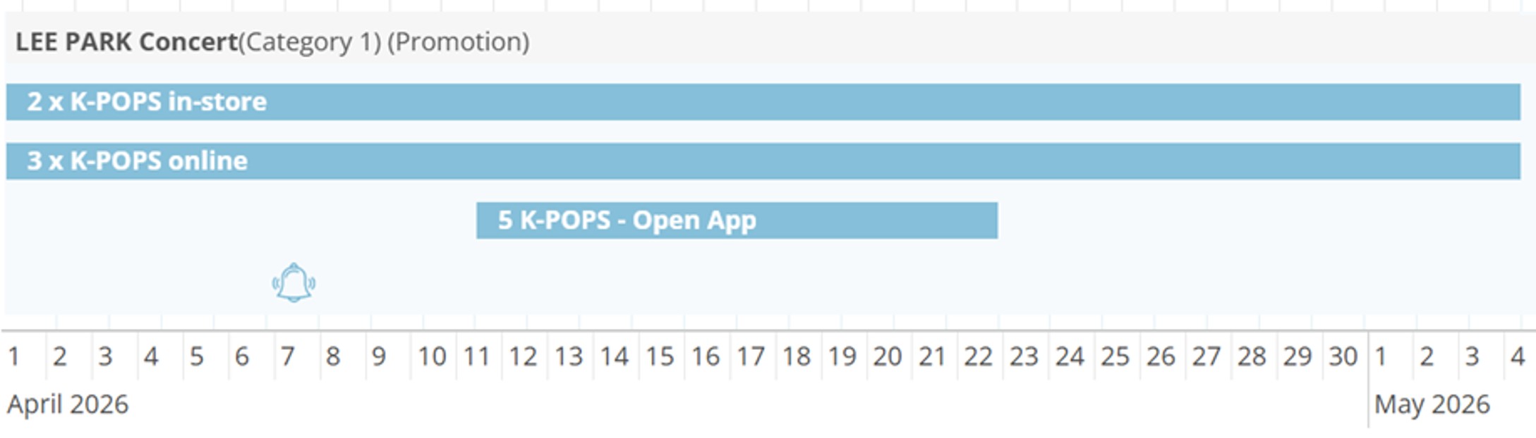 - 5 days after campaign start– Checkpoint – if there are tickets left, and for those who have earned 50% of required KPOPS, send communication that they are almost there